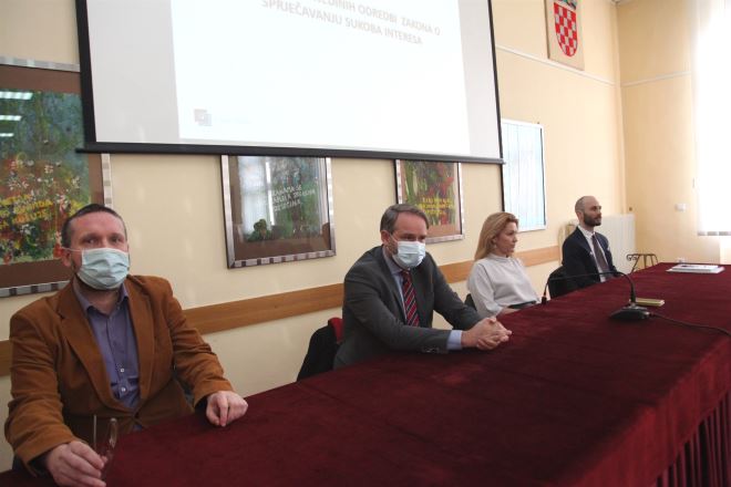 Prisutni su mogli čuti tumačenje pojedinih odredbi zakona o sprečavanju sukoba interesa kroz primjere iz prakse, kao i educirati se o svrsi podnošenja, rokovima i pravilnom popunjavanju obrazaca izvješća o imovinskom stanju te postupku provjere podataka, kao i postavljati pitanja.