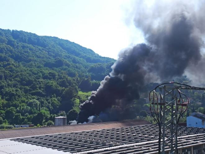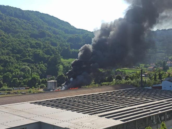 Prve informacije govore da je riječ o požaru na otvorenom prostoru u krugu tvornice Krateks
