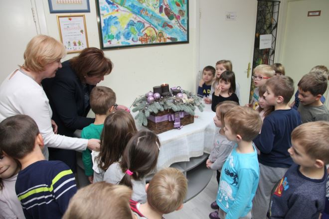Zamjenica župana upitala je mališane o njihovim aktivnostima u vrtiću, a oni su joj ispričali kako se pripremaju za Božić - posijali su pšenicu te peku kolače za priredbu i druženje s roditeljima.