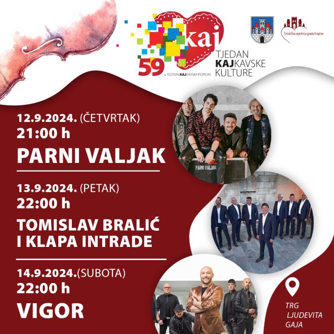 Pod motom "Vse počinje v Krapini", 59. tjedan kajkavske kulture ove će se godine održavati od 7. do 15. rujna. Kao i svake godine i ovoga je puta pripremljen bogati program, posebice što se tiče glazbenog dijela festivala.