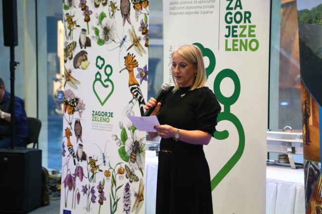 Zamjenica župana Jasna Petek, čestitala je 20 godina Javne ustanove Zagorje zeleno. –To je 20 godina entuzijazma, ljubavi prema svom radu, prirodi, prema svojoj županiji i strasti da sve ono što znaju prenesu na najmlađe i nas nešto starije, kako bismo svi vrijedno čuvali najveći resurs koji imamo, a to je lijepa, očuvana i netaknuta priroda. Svako od nas trebao bi se svako jutro buditi s mišlju u kako lijepom, očuvanom dijelu zemlje živi, i što danas može učiniti da doprinese očuvanju prirode. Zasigurno, ova brušura s 20 korisnih savjeta koji su vrlo jednostavni i vrlo primjenjivi za sve generacije mogu u tome pomoći. Izložba u Muzeju krapinskih neandertalaca je izložba prekrasnih pet područja Nature 2000, koja je nastala iz sjajnog projekta Veze prirode i sukus je svega što naša ustanova dobro radi. Moram pohvaliti i ravnateljicu i sve djelatnike ustanove na sjajnim projektima, proizvodima, brošurama i porukama koje s mnogih mjesta upozoravaju i velike i male kako brinuti i čuvati svoju prirodu – poručila je zamjenica župana Jasna Petek.