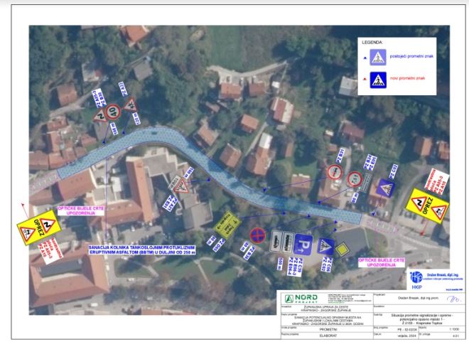 Planirani zahvat je duljine 250 metara, a na predmetnoj dionici planirana je ugradnja tankoslojnog asfalta BBTM-a, u punoj širini kolnika uz dopunu vertikalne i horizontalne signalizacije prema situaciji na fotografiji: