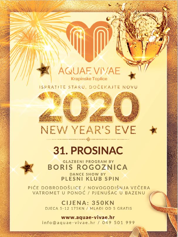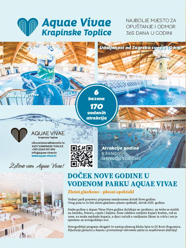 Svake godine u Aquae Vivae Nova godina dočekuje se opušteno, ne treba se misliti na šminku, frizuru, cipele i haljine. Žene odabiru omiljeni kupaći kostim, ruž za usne, za muža najdraže kupaće, a djeci ručnik s omiljenim likom iz crtića i sve je spremno za novogodišnju noć.