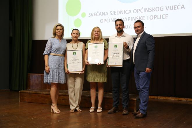 Plakete Općine dobili su Marta Turkulin Horvat, učiteljica glazbene kulture za istaknuti doprinos u osnovnoškolskom obrazovanju učenika i promicanju kulture, Sonja Kuštan, učiteljica hrvatskog jezika za istaknuti doprinos u osnovnoškolskom obrazovanju učenika i promicanju kulture, Đurđica Katušić, učiteljica njemačkog jezika za istaknuti doprinos u osnovnoškolskom obrazovanju učenika i promicanju kulture, Mira Korbar, učiteljica hrvatskog jezika za istaknuti doprinos u osnovnoškolskom obrazovanju učenika, promicanju kulture i njegovanju kajkavske riječi, Alemka Vujčić, bacc. med. techn. za doprinosu u razvoju zdravstvene djelatnosti na području Općine Krapinske Toplice, Jurica Tumpa za izniman doprinos u razvoju promocije turizma Općine Krapinske Toplice i malog poduzetništva i Miljenko Filipčić za doprinosu u razvoju malog poduzetništva i sudjelovanju u društvenim i humanitarnim događanjima na području Općine Krapinske Toplice.