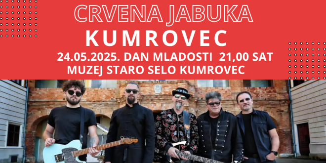 Glavna pozornica u centru Kumrovca donosi večernji spektakl: u 19:30 sati publiku će zagrijati Rebecca Band, dok u 21:00 sat na scenu stupa popularna Crvena jabuka. Njihove romantične balade i hitovi koje svi znamo jamče sjajnu atmosferu – također uz besplatan ulaz!