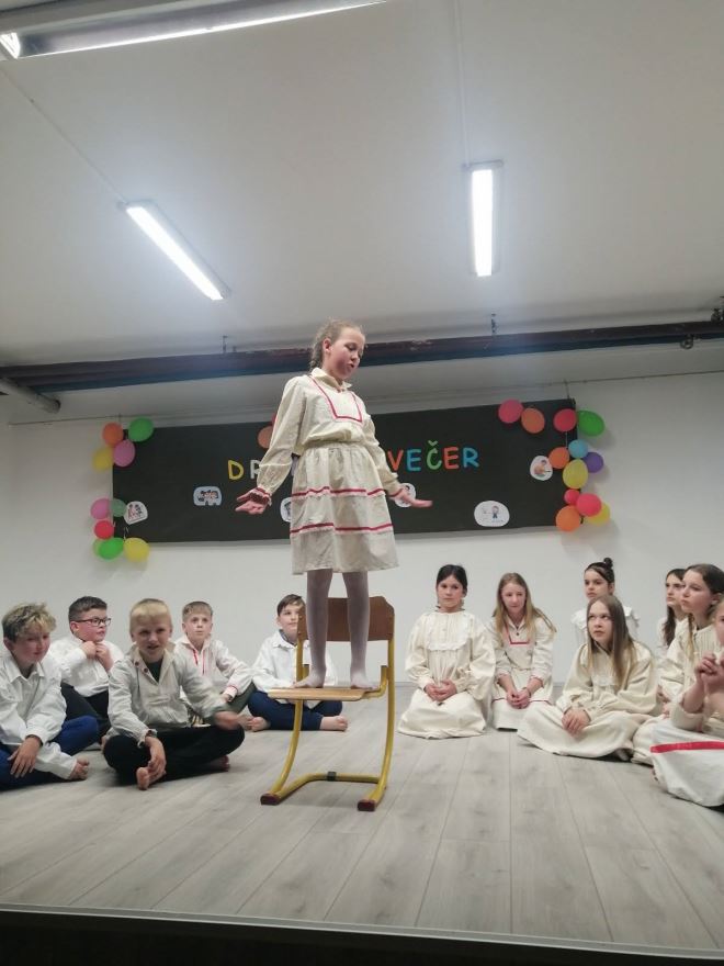 Pod mentorstvom učiteljice Marine Sušec pripremili su im četiri igrokaza, Kak je negdar bile (Zbornik priredaba, Nevenka Puh) gdje su prikazali kroz bakine priče svojoj unuci kako je nekada izgledao život djece i mladih. U igrokazu Na paši (Pavica Iveković) učenici su prikazali kako su se djeca nekada igrala dok su čuvala krave te su kroz igru ispričali su legendu o Veroniki Desinićkoj.