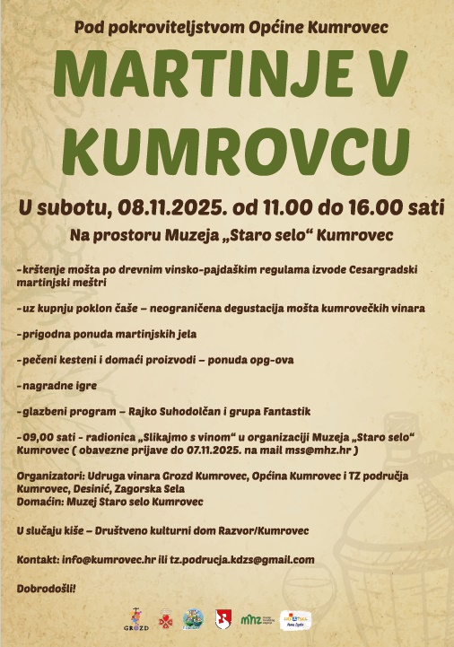 U subotu, 8. studenoga 2025. godine od 11 do 16 sati, u jedinstvenom ambijentu Muzeja „Staro selo“ Kumrovec održati će se tradicionalno Martinje v Kumrovcu, manifestacija koja svake godine okuplja ljubitelje vina, dobre hrane i veselja.