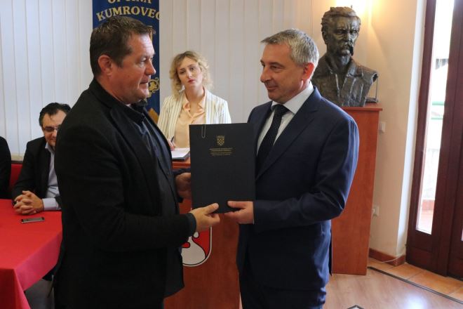 U Kumrovcu su danas potpisani ugovori s jedinicama lokalne samouprave, a vezani uz sufinanciranje komunalnih poslova. Ugovore je osobno predao ministar graditeljstva i prostornog uređenja Predrag Štromar. Rijče je o iznosu od 2,9 milijuna kuna za dva grada i 13 općina. Grad Klanjec dobio je 240 tisuća kuna za izvanredno održavanje nogostupa uz Županijsku cestu Ž2186 Lepoglavec-Novi Dvori, Grad Zlatar dobio je 185 tisuća kuna za uređenje parkirališta u Zlataru kod kućnog broja 96, Općina Bedekovčina 180 tisuća kuna za projekt izgradnje dječjeg igrališta i krajobraznog uređenja kulturnog centra Martinec Orehovički. Za uređenje pristupnih prostora postojećih građevina i autobusnog ugibališta na području općine, Općini Budinščina dodijeljeno je 105 tisuća kuna, a Općini Desinić dodijeljeno je 244 tisuće kuna za projekt pojačanog održavanja nerazvrstanih cesta Trnovec Desinićki-Crnići, dok je Općina Gornja Stubica dobila 391 tisuću kuna za asfaltiranje nerazvrstanih cesta u naselju Dubovec, Hum Stubički, Karivaroš i Modrovec.