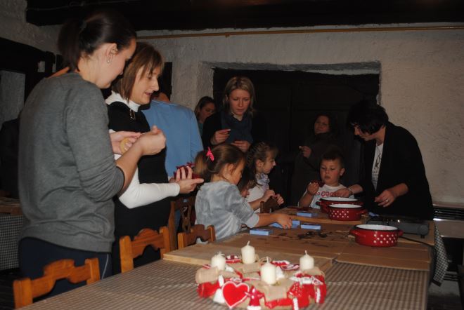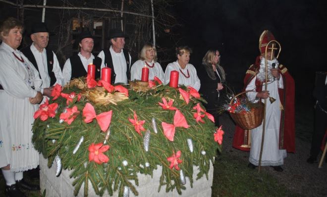 kuglica, izradom "našperenih" borića, čestitki i ukrasa za bor, medenjake i votive (crkveni zagovor) objekata, života i gospodarstva zagorskih obitelji. Dolaskom Svetog Nikole s Krampusom - "božićnim vragom" s punim košem brezovih šiba koje je dijelio razdraganoj djeci uz pitanje jesu li dobri i ne zločesti - darivali su im slatkiše! Vrhunac "Božićne priče" u predblagdanskom ozračju bilo je paljenje druge adventske svijeće u vijencu kojeg su izradili zaposlenici Muzeja "Staro selo" Kumrovec. Svijeće su upalile Tatjana Brlek i Zdenka Poljak, voditeljica pjevačkog zbora Etno udruge "Zipka".