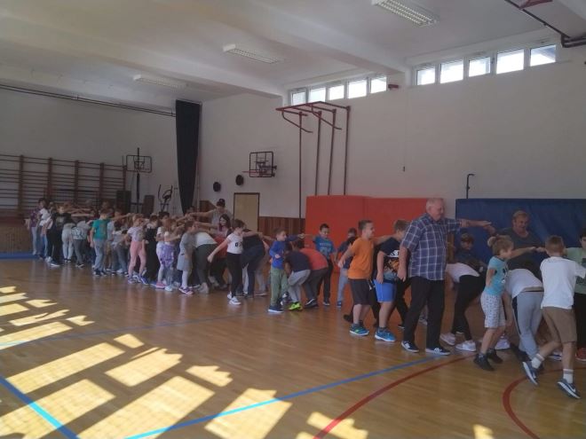 Ubrzo nakon toga su učenici ponovno preuzeli pozornicu pa su recitirali, glumili, pjevali i čitali svoje uratke o djedovima i bakama. Za kraj priredbe pripremljena je jedna zaboravljena priča. Iz školske kinodvorane svi su se preselili u sportsku dvoranu gdje su učiteljice pripremile razne igre za sve generacije. Razgibavanje je započelo opće pripremnim vježbama, a nakon toga su krenule štafetne igre prenošenja lopte iznad glave. Vijače se ovaj put nisu preskakivale, već su poslužile za igru Križić kružić pa su tako bake i djedovi pokazali snalažljivost i spretnost, a na kraju se i plesalo.