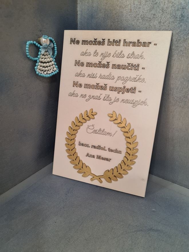 - Muž voli raditi s drvom, brat zna s 3D printerima i laserima pa smo zajedno krenuli i u to. Većina tih stvari je završila kao poklon pa se ovim putem ispričavam i onima kojima je već bilo dosta mojih „poklona“, a vjerujem da ih ima. Naime, žao mi je bilo baciti nešto pa je to pronašlo onda svoj dom kod neke drage osobe. Tokom drugog porodiljnog sam stagnirala u svojim hobijima pa mi je to počelo faliti. Početkom godine otvorila sam obrt, uz punu podršku supruga – ispričala je Mateja, ponosna supruga i majka dva mala vragolana koji zapravo i upotpunjuju njezin čitav dan. Po zanimanju je magistra geologije i iako je geologija njezina prava ljubav, nikad nije radila u struci. Prije otvaranja obrta radila je u administraciji. Podupirajuća je članica nekoliko udruga u Maču i voli sve kreativno, a pogotovo tradicionalno.