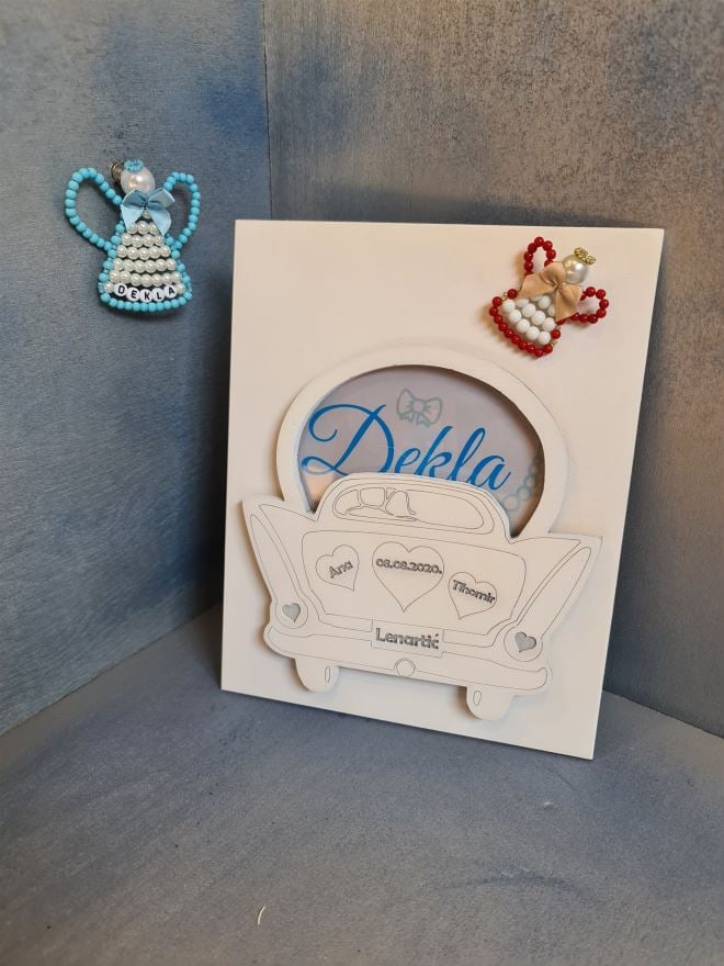 - Mislim da mi je od svega najteže bilo izabrati ime za obrt. Do tad sam imala stranicu Sunčevi kamenčići na Facebooku gdje sam stavljala fotografije radova i promovirala domaću radinost dok je bila aktivna. Znala sam da to ime ne želim jer jednostavno više nije bio samo nakit već i drveni suveniri. Shvatila sam da je ime za obrt zapravo cijelo vrijeme prisutno. Svojem mužu, od ranih dana veze pa i cijeli brak, ja sam „Dekla“. S obzirom da je on izrazito zaslužan da sam se odlučila na ovaj korak, često ima više vjere u ovaj obrt od mene te da sam njemu ja dekla - to ime je ostalo njemu u čast – smije se Mateja. Dekla se trenutno bavi većinom izradom suvenira i poklona od drva. Nakit od staklenih perlica je nažalost u cijeloj toj priči trenutno pao u drugi plan, ali je i dalje prisutan. Proizvodi su razvrstani u 8 kategorija. - Suveniri od perlica, kao što i sam naziv govori su od staklenih perlica, iznimka u kategoriji je privjesak od epoksi smole. Suveniri od drva su velika kategorija proizvoda gdje se nalaze satovi, kasica, okviri za slike i slični ukrasi za dom koji se izrađuju od šperploča, mdfa, pravog drva i pleksiglasa u kombinaciji s metalnim detaljima. Suveniri za bebe i djecu su od silikonskih perlica, a kutije su od šperploče. Repromaterijal; slova, brojke, oblici, natpisi, popularni vrhovi za torte; su od šperploče i pleksiglasa. Također je moguća i usluga rezanja i graviranja po pripremi kupca ili ukoliko kupac nema pripreme već samo ideju i to je ostvarivo. Svi proizvodi su personalizirani prema željama kupca i dolaze složeni i prelakirani u boju po želji – govori Mateja.