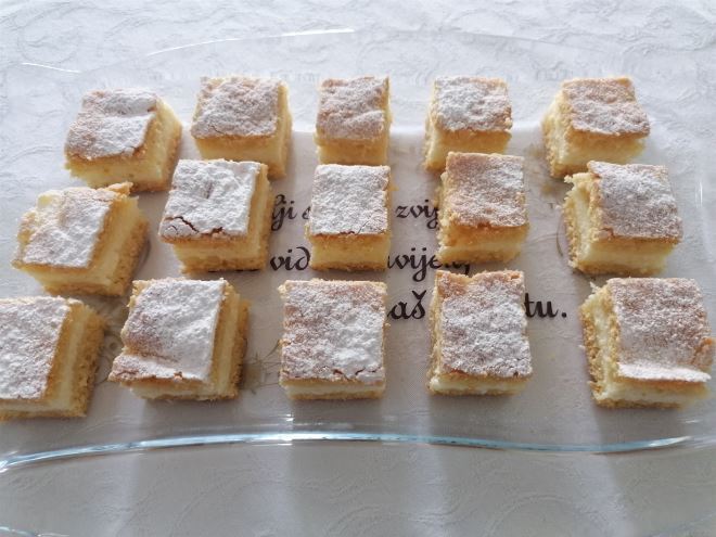 Izmiksati sir sa šećerom, dodati sok od jednog limuna, brašno i na kraju snijeg od bjelanjaka.