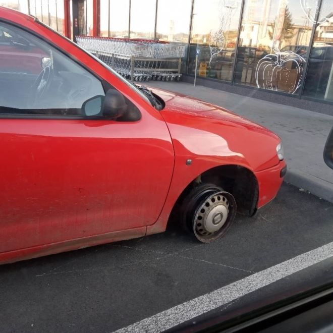 Na društvenim mrežama osvanula je fotografija jednog uredno parkiranog vozila na kojoj se vidi da vozilo nema gumu na prednjem kotaču, a isto tako, na asfaltu je vidljiv trag da se vozač (ili vozačica) dovezao na parking 'po felgi'.