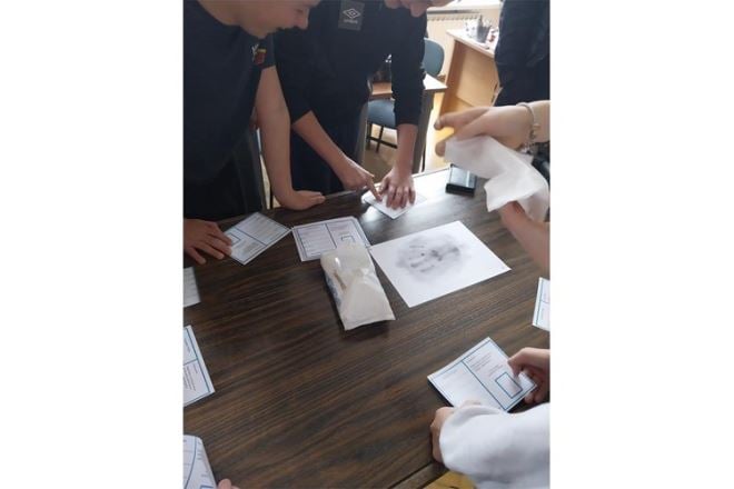 Kriminalistički tehničar Miroslav Jembrih je kroz osobni kontakt i konkretne primjere prisutnim učenicima prikazao kako se kriminalistički tehničar oprema za izlazak na mjesto događaja, na koji način pronalazi, izuzima i obrađuje pronađene otiske papilarnih linija, kako se nevidljivi tragovi mogu učiniti vidljivima, kako se izuzimaju otisci prstiju i dlanova osoba kao i otisci đonova cipela, kojim priborom se pri tom služi a svaki učenik je imao priliku izuzeti otisak svog prsta i usporediti ga s ostalim učenicima kako bi se uvjerili po čemu se svi razlikujemo jedni od drugih.