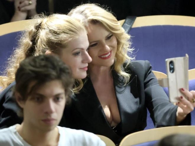 Povela je i svoju sestru koja se odlučila također na crnu kombinaciju. Fotoreporter Pixsella fotografirao je i trenutak kada su sestre obilježile dolazak na premijeru zajedničkim selfijem.