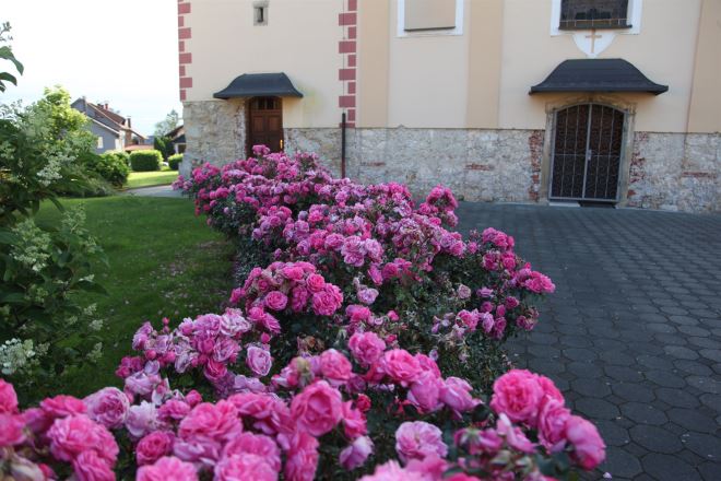 Ispred crkve Uznesenja Blažene Djevice Marije u Oroslavju cvatu prekrasne ruže. Za njih je zaslužna Karmen Kraljić, sakristanka u crkvi. – Brinem se o cvijeću te unutarnjem i vanjskom uređenju crkve. Ove ruže su katruže, nisu penjačice. Obrezujem ih redovito, špricam i gnojim i zato su tako lijepe – rekla je gospođa Karmen.