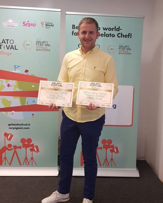 Tako je bilo i ove godine. Krešin sladoled pod nazivom Zagorska bajka na dlanu osvojio je nagradu za najinovativniji i najkreativniji sladoled za 2019. godinu. I kao šećer na kraju, Krešo radi najbolji sladoled u kategoriji slastičara do 30 godina, odlučeno je na festivalu.