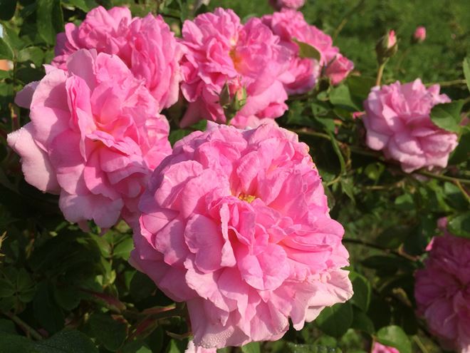 Damašćanske ruže (rosa damascena), cijenjene po svom mirisu, od davnina se uzgajaju za komercijalnu proizvodnju ružina ulja. Za jednu litru ulja potrebno je ubrati 4000kg latica. Cvatu jednom godišnje, dvadesetak dana te se beru u ranu zoru dok su još latice okupane rosom.