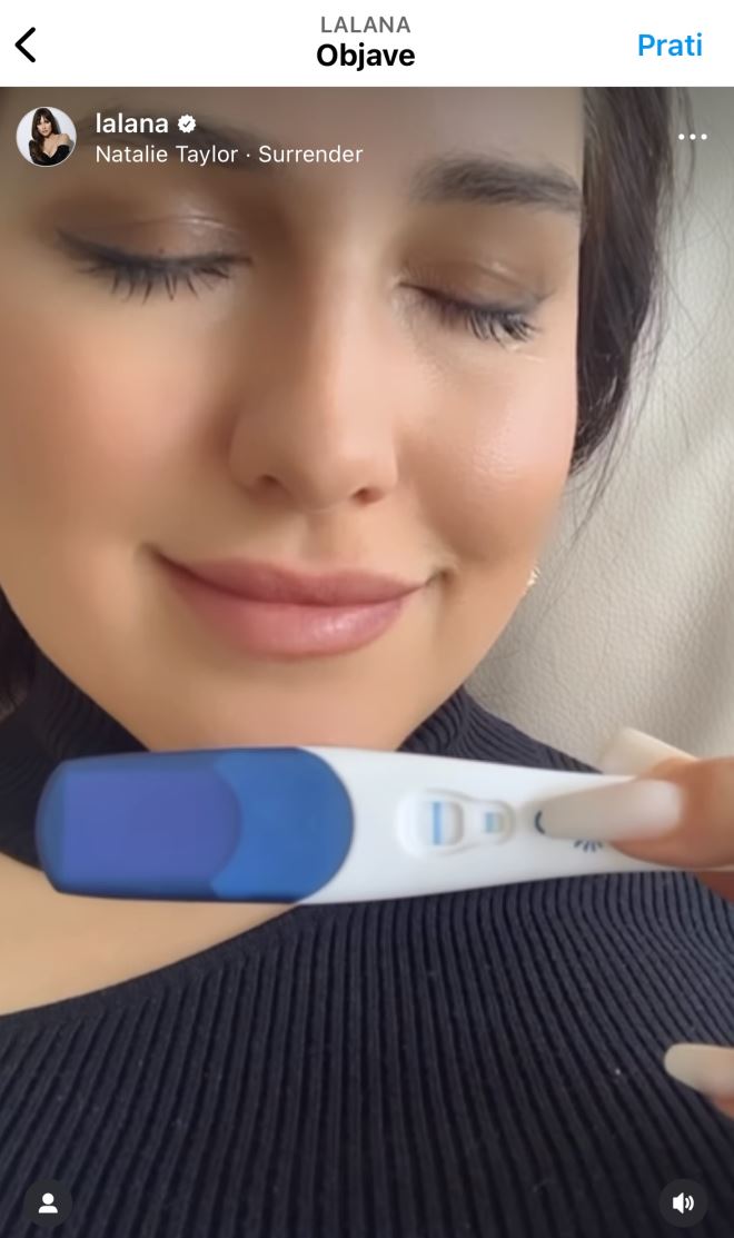 Na svom instagram profilu naša poznata pjevačica i poduzetnica Lana Jurčević objavila je emotivan video u kojem je pokazala suze i otkrila pozitivan test na trudnoću. Video je komentiralo preko 1250 ljudi, a skupila je i preko 24000 lajkova.