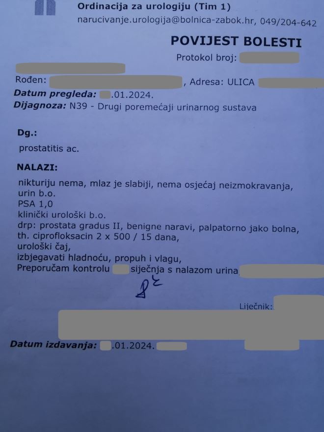 Ipak, kaže, odlučio se naručiti za kontrolni pregled urologa u OB Zabok, te je upravo prošlog tjedna išao na pregled.