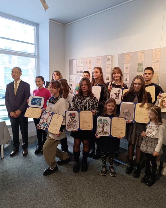 Nagrađenim učenicima diplome je uručio veleposlanik Japana u Republici Hrvatskoj, Njegova Ekselencija Iso Masato.