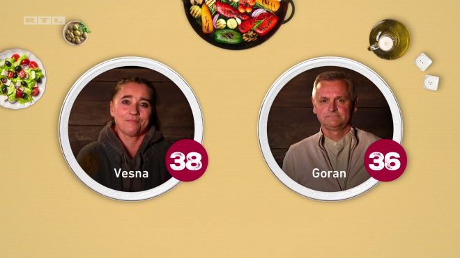 Preostalo je još ocijeniti večeru - Dijana je večeru ocijenila s deset bodova jer joj je sve bilo savršeno, kao i Juraj koji je rekao kako bi bilo grijeh dati manju ocjenu. Vesni je salata bila prekisela pa je Goranu dala devet bodova, a Carmen sedam zbog jednostavnog i neobičnog deserta.