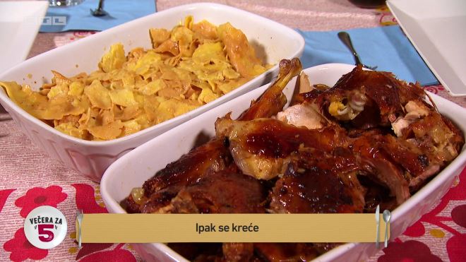 Goran je prvo pripremao glavno jelo koje je nazvao 'Ipak se kreće, za koje su gosti ispravno pretpostavili da će biti riječ o puranu s mlincima. Purana je odlučio pripremiti na ražnju. Puran je špikao domaćim špekom kako ne bi bio suh, a u pomoć s pripremom glavnog jela mu je priskočio i prijatelj Štef.