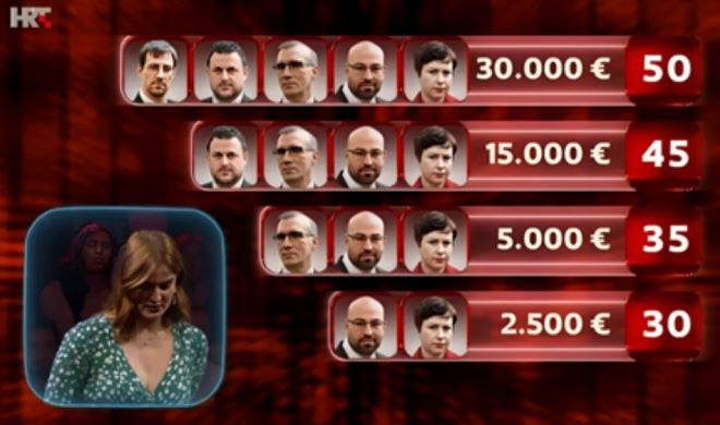 Naime, na ploči se našao iznos od 5000 eura koji je bila unaprijed zacrtala, a usto, željela je igrati i protiv Mladena Vukorepe uključenog u tim lovaca za borbu unutar tog iznosa. No kako u njoj ima "ono zagorsko: kaj budu ljudi rekli", odlučila se za ponudu od 15.000 eura.