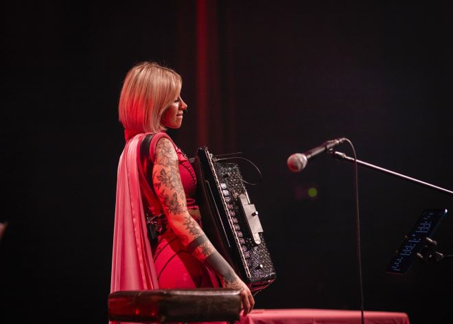 Stela, osim što pjeva, svira i gitaru, klavijature, bubnjeve te – harmoniku, po kojoj je postala posebno upečatljiva. Publiku je, naime, dodatno osvojila i jednim simpatičnim detaljem: njena harmonika, umjesto crnih, ima roze tipke, čime je svoju ljubav prema toj boji prenijela i na ovaj mnogima omiljeni instrument.