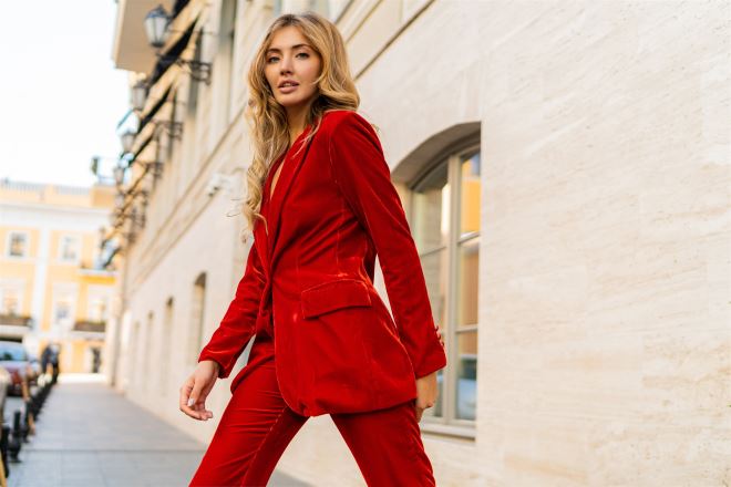 Za nešto malo drugačiji ali opet jednako tako efektan outfit za ulazak u najluđu noć predlažemo odijelo od baršuna. Birajte neku od žarkih boja poput crvene ili žarko plave ili pak za potpunu eleganciju tu je crna opcija. Predlažemo posjetite trgovinu Comma ili h&m u Westgateu ako ste u potrazi za ovakvom kombinacijom.