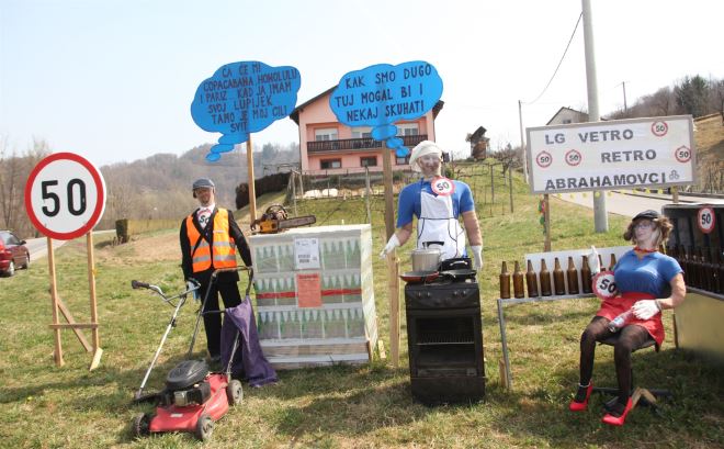 -Mi smo ekipa koja se voli družiti i, naravno, šaliti. Što se tiče samih ovih lutaka na ulazu u naselje, to smo, moram priznati, vidjeli kod naših susjeda u Sloveniji, koji takve stvari odavno rade. Prije tri godine smo počeli to raditi i mi, kad je prvi iz naše ekipe navršavao pedeset godina. I sad je naša ekipa napravila to i za Matejku, Roberta i mene, a kako svo troje radimo u Vetropacku, tako je i ova „instalacija“ u skladu s tim. Što se tiče rođendanske fešte, naravno da nije jedna, nego su tri. Dvije smo već odradili, a ove subote slijedi treća – ispričao nam je simpatični Damir, u društvu susjeda koji upravo danas slavi rođendan. Doduše, ne baš pedeseti, no, ne bi li to bilo malo previše fešti i lutaka da baš cijelo naselje slavi pedesti rođendan u isto vrijeme?