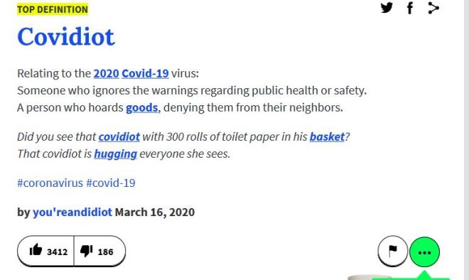 Sve je više i više slučajeva kršenja samoizolacije, ali i onih koji liječnicima lažu da su zaraženi koronavirusom. Na stranici urbandictionary na kojoj se objavljuju neprestano novi termini objašnjen je i jedan novi termin 'kovidiot'.
