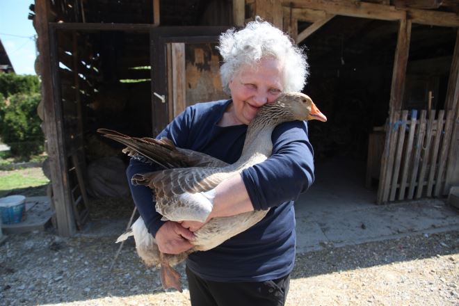 Dojdite malo do mene. Ja sam vam stara i imam jednog veoma starog kućnog ljubimca – pozvala nas je gospođa Ana Lihter iz zabočkog Grabrovca u posjet. I došli smo upoznati tog neobičnog kućnog ljubimca. Nit' je gospođa Ana stara, a niti guska izgleda staro. Još nije ni punoljetna, našalili smo se malo. No, za gusku su to ipak visoke godine. Severina je nedavno napunila velikih 17 gušćjih godina, jako je umiljata i lijepog sivog perja.