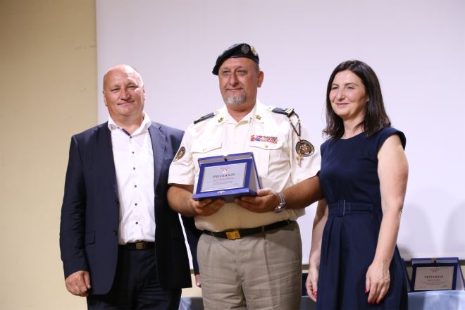 Nagradu za izniman doprinos postavljanja biste prvom hrvatskom predsjedniku Franju Tuđmanu dobio je bojnik 1. gardijske brigade Tigrovi, Željko Herceg.