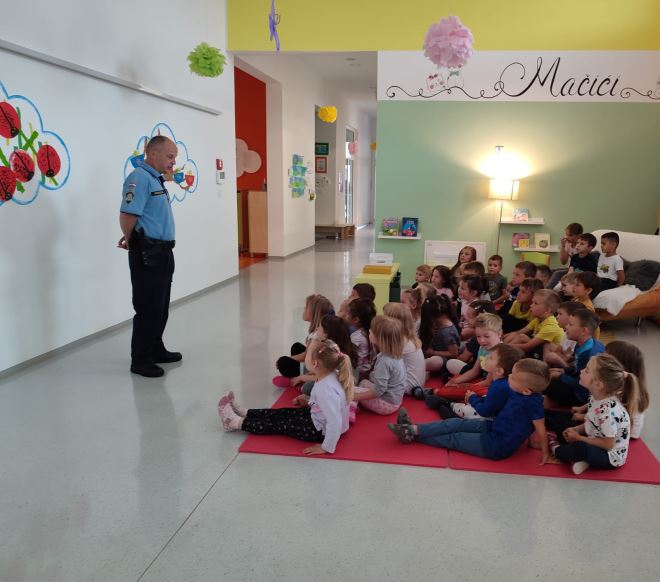 Dječji vrtić Mačići posjetio je djelatnik Policijske postaje Zlatar Bistrica Davor Klenkar kako bi djecu srednje i starije odgojne skupine pobliže upoznao sa zanimanjem "Policajac". Kako se treba ponašati u prometu, kako i gdje sigurno prijeći cestu, što sve od opreme u svome radu koristi policajac, samo neka su od pitanja na koja su djeca dobila odgovor tijekom zanimljivoga razgovora. Zajedničko druženje završeno je razgledavanjem policijskog auta uz zvuk raznih sirena koje su posebno oduševile sve prisutne mališane. U znak zahvale, djeca su policajcu Davoru poklonila slike koje su vrijedno i marljivo sami izradili.