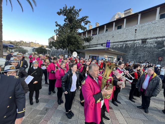 Svečanošću ispred glavnih gradskih vrata, prijavkom i predajom zastave, dočekani su odredi Bokeljske mornarice iz Tivta i Herceg Novog, a potom je formiran odred Bokeljske mornarice koji se u pratnji gradskih glazbi Kotora, Tivta, Puhačkog orkerstra iz Marije Bistrice i Šibenske narodne glazbe, uputio pred katedralu svetog Tripuna.
