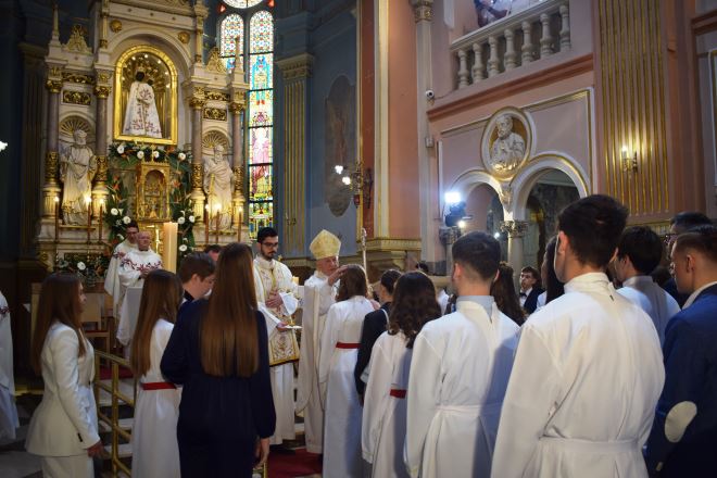 U Mariji Bistrici, prvu subotu nakon Uskrsa tradicionalno je na rasporedu i Sveta potvrda. Tako je u subotu za 59 potvrđenika župa Marija Bistrica i Laz i Sveti Matej sakrament Svete potvrde podijelio biskup mons. Mijo Gorski.