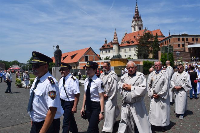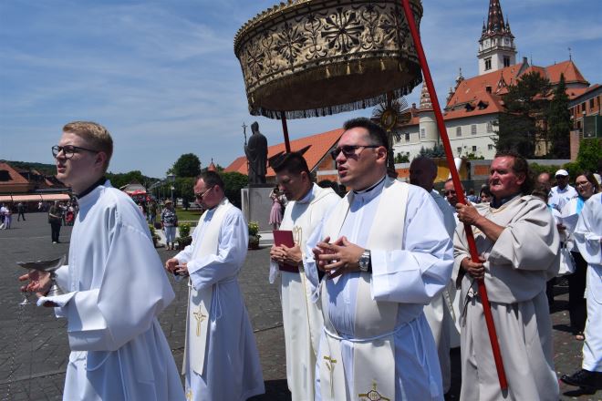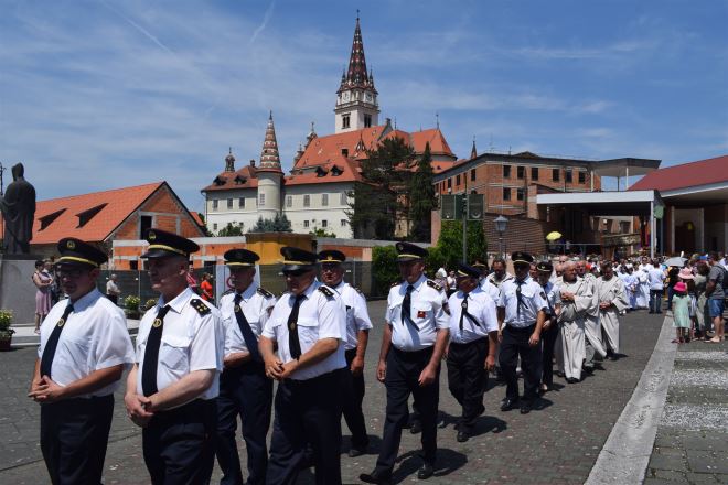 Tijelovo, blagdan presvetog tijela i krvi Kristove, obilježen je u našem najvećem marijanskom Svetištu, u Mariji Bistrici. Središnje misno slavlje u Crkvi na otvorenom blaženog Alojzija Stepinca, predvodio je p. Anto Pavlović, a nakon mise uslijedila je tijelovska procesija prema obližnjem Samostanu sestara Karmeličanki. U procesiji su sudjelovali ''Apostoli'', vatrogasci Vatrogasne zajednice Općine Marija Bistrica i ovogodišnji prvopričesnici.
