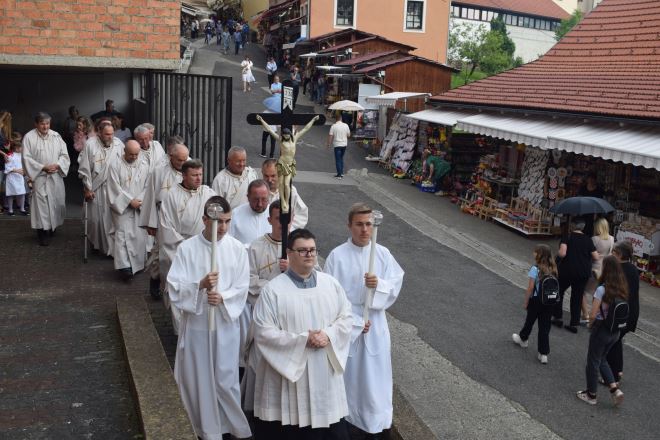 Tijelovo, blagdan presvetog tijela i krvi Kristove, obilježen je u našem najvećem marijanskom Svetištu, u Mariji Bistrici. Središnje misno slavlje u Crkvi na otvorenom blaženog Alojzija Stepinca, predvodio je preč. Domagoj Matošević, rektor Svetišta.