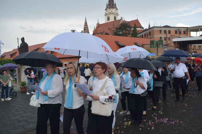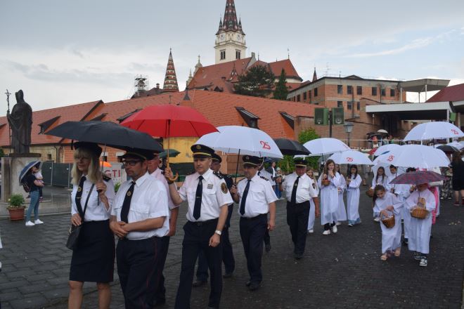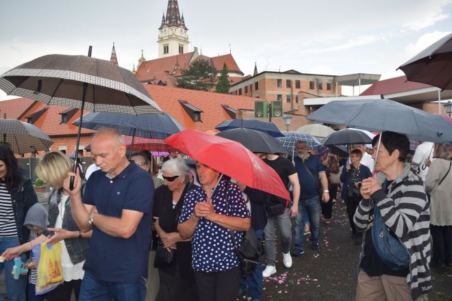 No, to nije spriječilo brojne vjernike da sudjeluju na misi, kao i članove bistričkih udruga, koji redovito sudjeluju u obilježavanju Tijelova u Mariji Bistrici. Tako je, usprkos kiši nakon mise formirana tijelovska procesija prema obližnjem Samostanu sestara Karmeličanki.