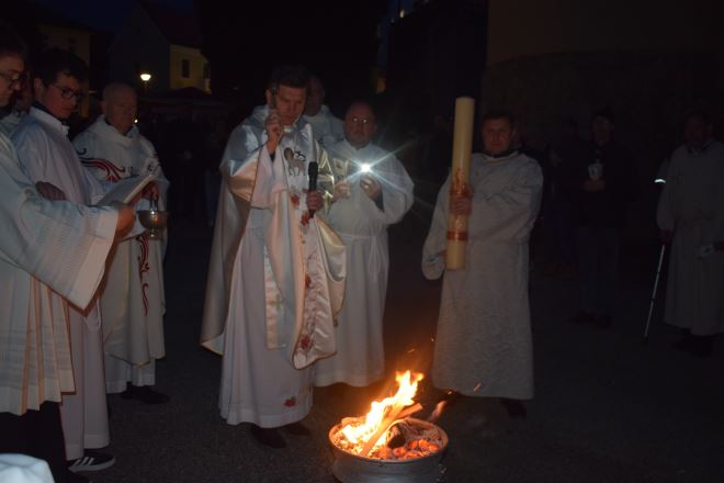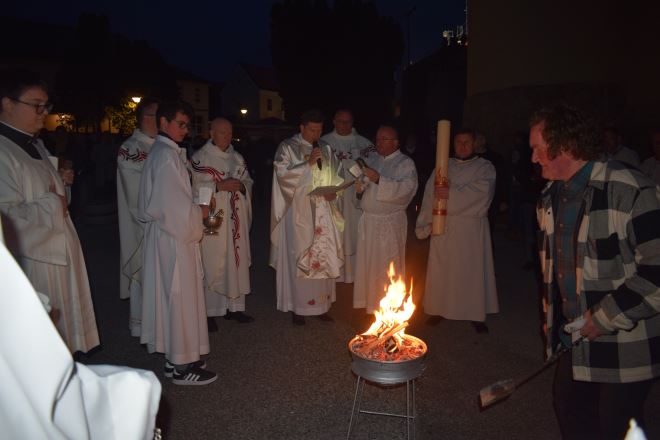 Slavimo Uskrs. Vazmenim bdjenjem sinoć je u Nacionalnom Svetištu MBB u Mariji Bistrici završilo sveto vazmeno trodnevlje, koje je počelo na Veliki četvrtak misom večere Gospodnje, nastavljeno je na Veliki petak obredom Službe muke Gospodnje, a dovršeno je sinoć bdjenjem.