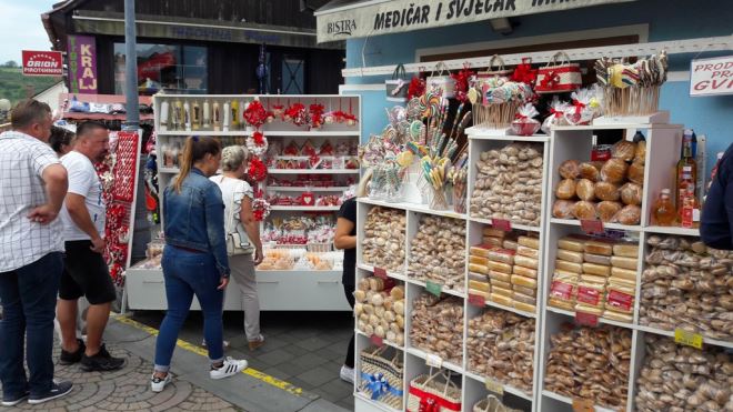 Naravno da je Marija Bistrica poznata po medičarima, drvenim igračkama i loncima, no sada se tu prodaje sve i svašta, pa se tako uz kineske igračke prodaju i medenjaci… Svi ljudi trebaju zaraditi, ne osporavam ničiju prodaju, tržište je otvoreno, no mislim da baš pored crkve nije mjesto svemu i svačemu i da bi to trebalo malo posložiti, dovesti u red. Godinama pričam i sugeriram da bi na ulazu u Mariju Bistricu trebalo staviti pano – plakat s naša dva proizvoda koji su na UNESCO –voj listi nematerijalne kulturne baštine svijeta tako da turisti koji su došli iz stranih zemalja i vide i znaju koja su to naši autohtoni suveniri, no za to nema sluha – rekla je Mahmet Habazin. Ivica Mesar, majstor drvenih tradicijskih igračaka koji su na listi nematerijalne kulturne baštine kaže kako strani turisti više – manje znaju za drvene igračke, no za Veliku Gospu kupci su većinom domaći hodočasnici. - Očekujem da će se danas prodati dosta igračaka. Vole ih djeca, no problem je što je djece sve manje i nema se tko igrati – prokomentirao je Mesar.