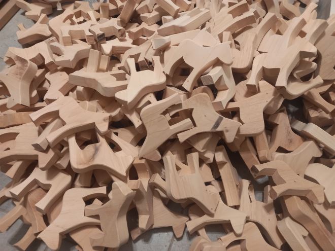 Proces nastanka drvenih igračaka nije nimalo jednostavan, iziskuje puno vremena i truda. – Drvene igračke se rade šablonski, znači imamo sve šablone za pojedinu igračku, pa ih ucrtamo na potrebne debljine drva, ručno ispilimo, pobrusimo i na kraju zalijepimo i pribijemo čavliće. Tada dobijemo gotovu drvenu igračku koju treba obojati, oslikati i ukrasiti. Sam proces je jako dug jer se sve radi ručno i za jednu igračku da bude gotova trebao bi cijeli dan, no mi uvijek radimo po 20-30 igračaka pa to onda ide brže. Nekih jednostavnijih igračaka uspijemo napraviti 20 u jednom danu, i drugi dan ih uspijemo obojati i oslikati. Kod malo kompliciranijih, kao što je npr. kamion ili vlak, treba nam malo duže, jer imaju više djelova. Svaka igračka je od početka do kraja rađena ručno pa je samim time i svaka unikatna – otkrivaju nam proces nastanka igračaka Ivana i Lovro. Trenutno u ponudi imaju oko 50 vrsta tradicijskih igračaka, oko 30 didaktičkih, a izrađuju i personalizirane igračke.