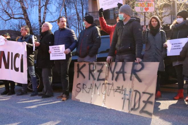 Članovi udruge Krizni eko stožer Konjščina i građani Konjščine danas su se okupili kod Bluesun hotela u Mariji Bistrici gdje se održava sjednica Kluba zastupnika HDZ-a Hrvatskog sabora na kojem su i premijer Andrej Plenković te ministri, kako bi, rekli su, skrenuli pozornost vladajućih na gorući problem u Hrvatskom zagorju i u općini Konjščina, a gdje načelnik Mirko Krznar planira izgradnju megalomanskih pogona za spaljivanje i obradu otpada.