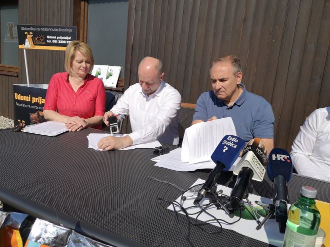 -Prvi je ugovor upravo zbog promocije i edukacije, da djelujemo na svijest i savjest ljudi kako se treba ponašati prema životinjama, a drugi kako bismo osigurali određena mjesta za starije životinje koje će teško naći novog vlasnika. Pozivamo ljude na odgovorno ponašanje, a pozivam i svoje kolege načelnike i gradonačelnike da mjere vezane za čipiranje provode na svojim područjima. I na kraju, poziv ljudima koji žele imati kućnog ljubimca da dođu ovdje i izaberu ljubimca. I mi imamo u kući prekrasnog žutog mačka Duška kojeg je moja kćer prije godinu dana udomila iz Luči Zagorja i pozivam i sve ostale da na ovakav način izaberu ljubimca – pozvao je župan Kolar.