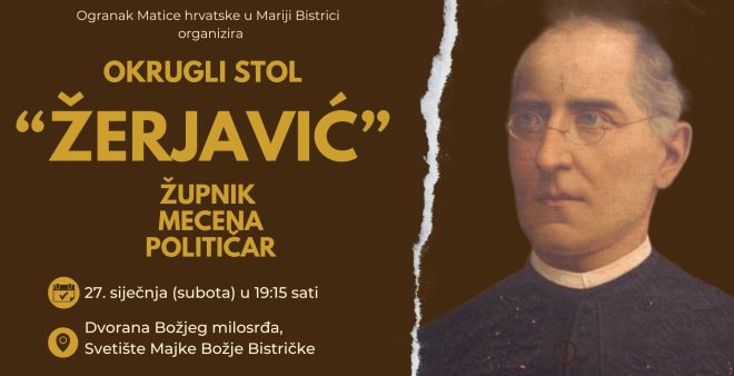 „Žerjavić je u svojih 35 godina u Mariji Bistrici ostavio neizbrisiv trag, koji je jasno vidljiv i danas. Njegova predanost razvoju našeg mjesta, nacionalnog Svetišta i čitave Hrvatske zaslužuju pažnju i poštovanje, zbog čega i organiziramo ovaj okrugli stol. Pridružite nam se i upoznajte zanimljive detalje o ovom izvanrednom čovjeku. Što je sve izgradio u Mariji Bistrici? Zašto njegovo ime i danas ime nosi jedna od ulica u samom središtu Zagreba? Zašto je njegovo ime upisano u povijest praktički svih tehničkih fakulteta u Hrvatskoj? Zašto je osuđen na mjesec dana zatvora? Odgovore na ova, ali i brojna druga pitanja dobit ćete u subotu, 27. siječnja, u Dvorani Božjeg milosrđa kraj prve postaje križnog puta u Svetištu Majke Božje Bistričke“, poručuju iz Ogranka Matice hrvatske u Mariji Bistrici te na potpori u organizaciji zahvaljuju Svetištu Majke Božje Bistričke i Općini Marija Bistrica.