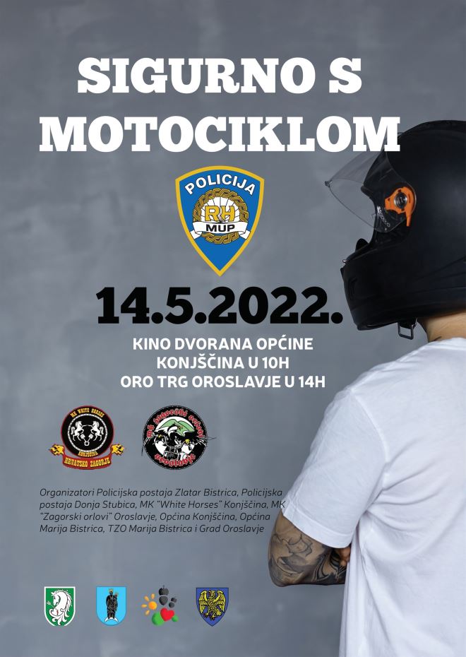 U organizaciji Policijske postaje Zlatar Bistrica, Policijske postaje Donja Stubica, MK “White horses” Konjščina, MK “Zagorski orlovi” Oroslavje, Općine Konjščina, Općine Marija Bistrica, TZO Marije Bistrica i Grada Oroslavja u subotu 14. svibnja održat će se akcija ” Sigurno s motociklom”.
