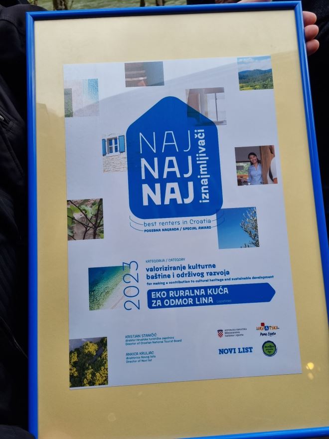 Međimurska kuća za odmor Lina u Preškovcu nagradom je Novog Lista, koju podupiru Hrvatska turistička zajednica i Ministarstvo turizma, proglašena Najboljim turističkim objektom za valoriziranje turističke baštine i održivog razvoja u Hrvatskoj.