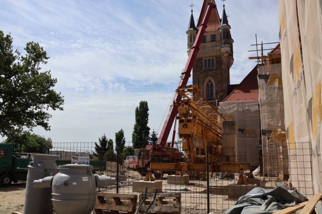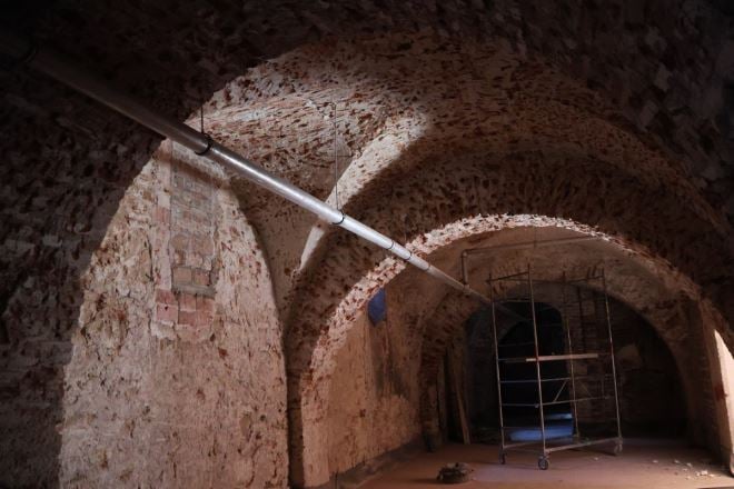 Radovi na obnovi napreduju u više smjerova istovremeno. Završeni su svi pripremni zahvati, a s unutarnjih zidova i podova uklonjena je dotrajala žbuka. U punom su zamahu strojarske instalacije – ugrađuju se sustavi grijanja, hlađenja i ventilacije – dok se elektroinstalacijski radovi izvode u više prostorija paralelno, dok su u prizemlju već započeli radovi na žbukanju zidova.